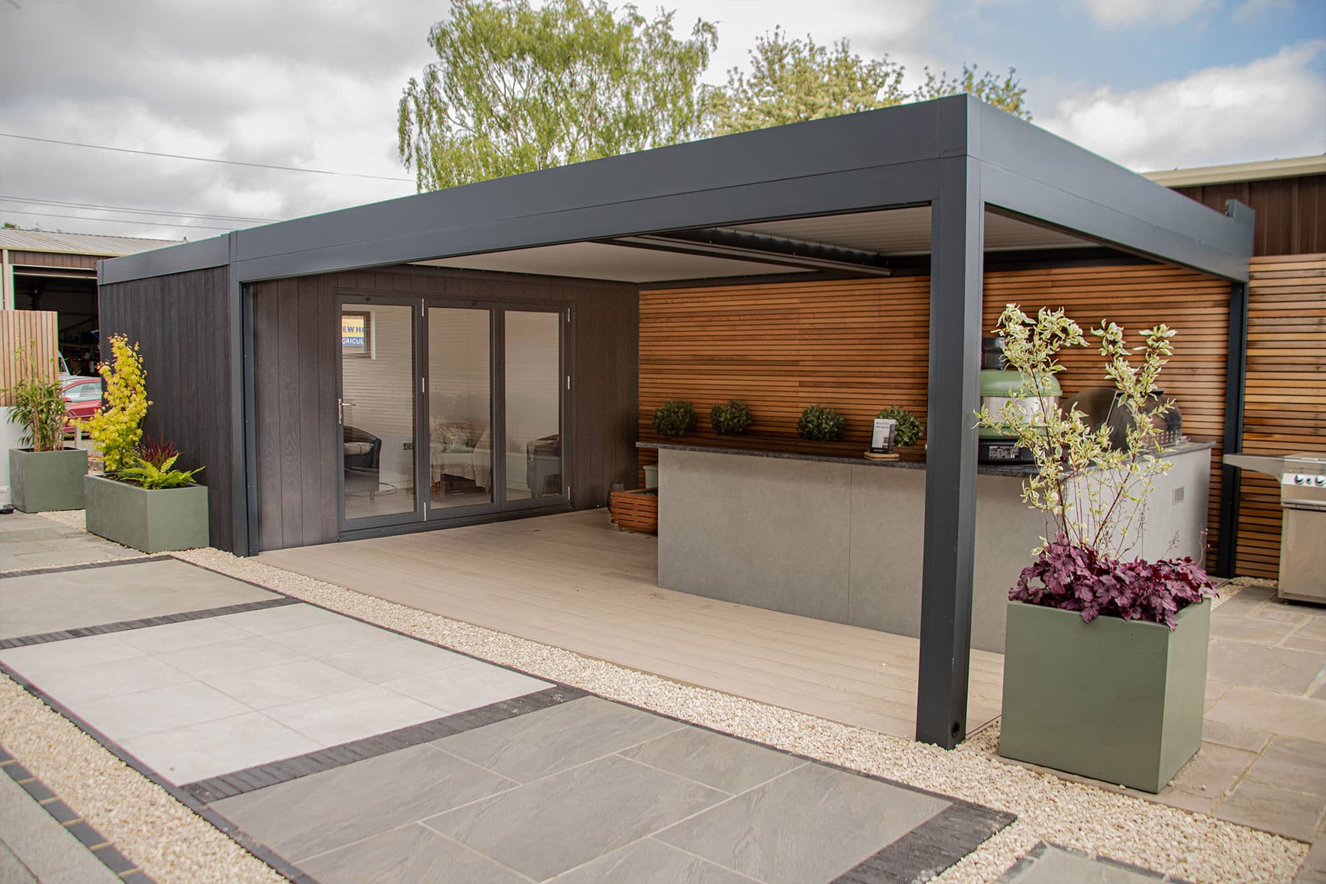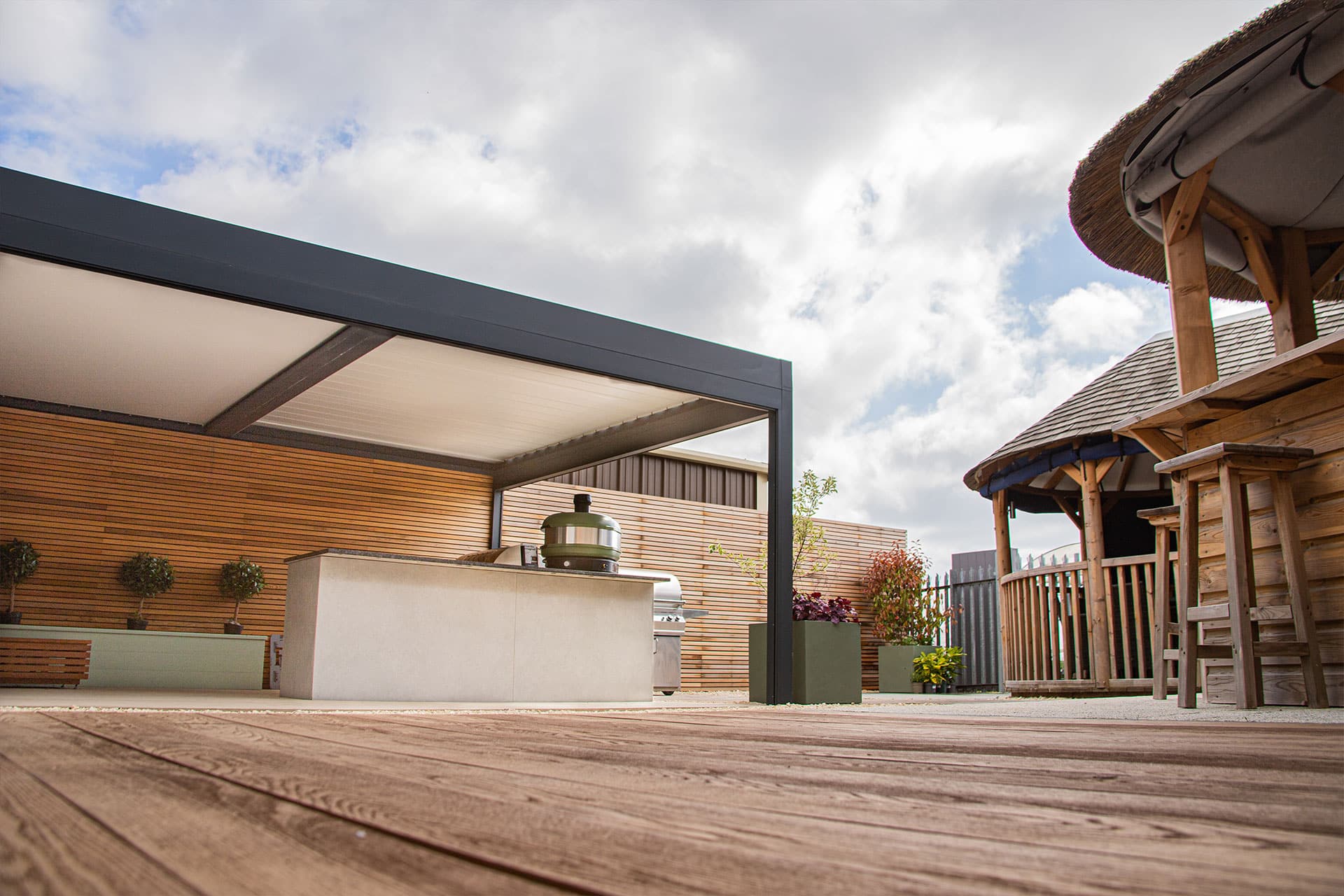 Browse our range of outdoor kitchens, louvred pergolas, and more all from the comfort of the UK’s largest outdoor living showroom.