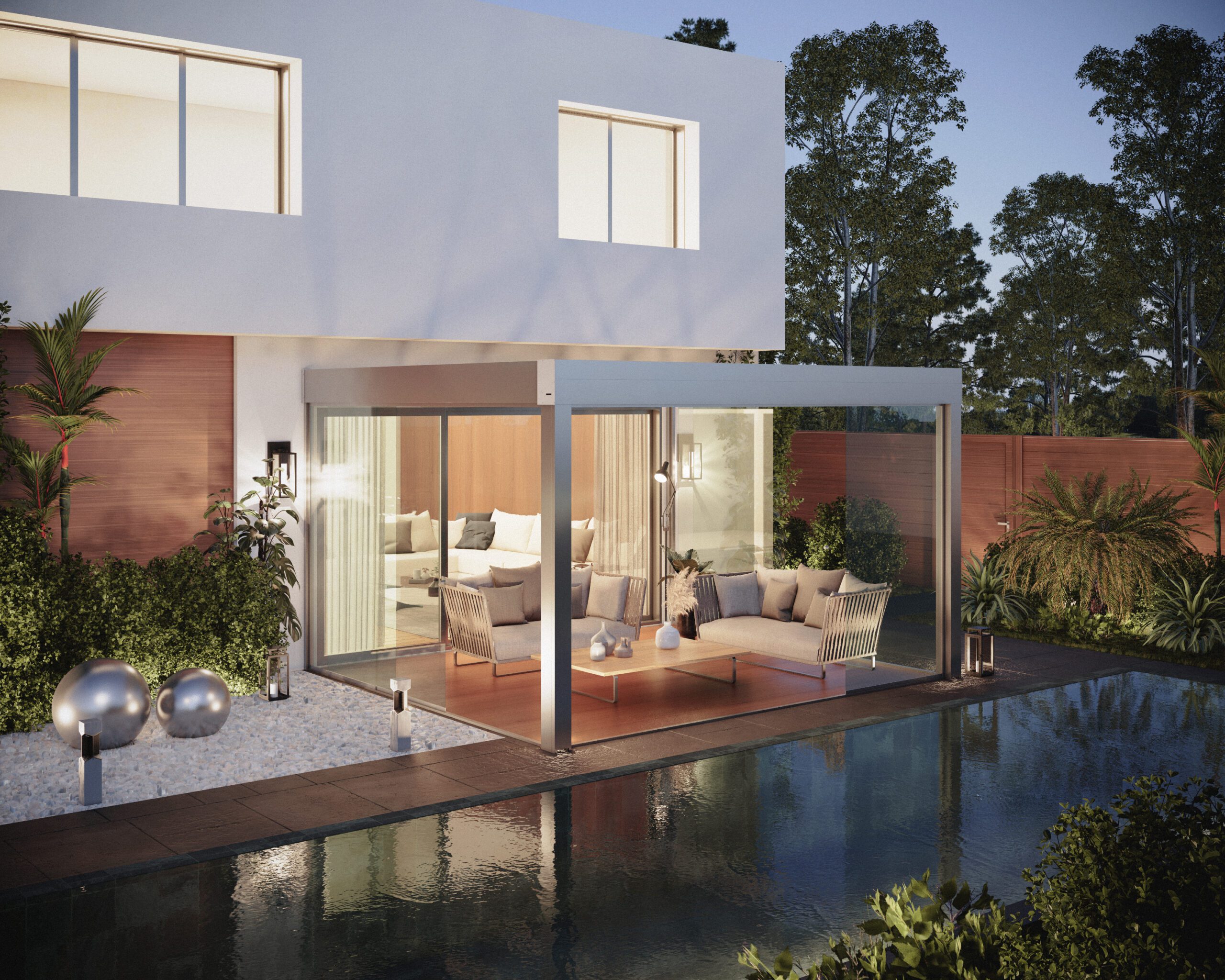 Designed with versatility in mind, CUBO features custom roof styles, discreet drainage, and optional LED lighting for evening ambiance. Solar control glazing and tailored shading ensure comfort in every season. More than just a structure, CUBO creates a bright, sheltered extension of your home, combining comfort, durability, and timeless style in one elegant solution.