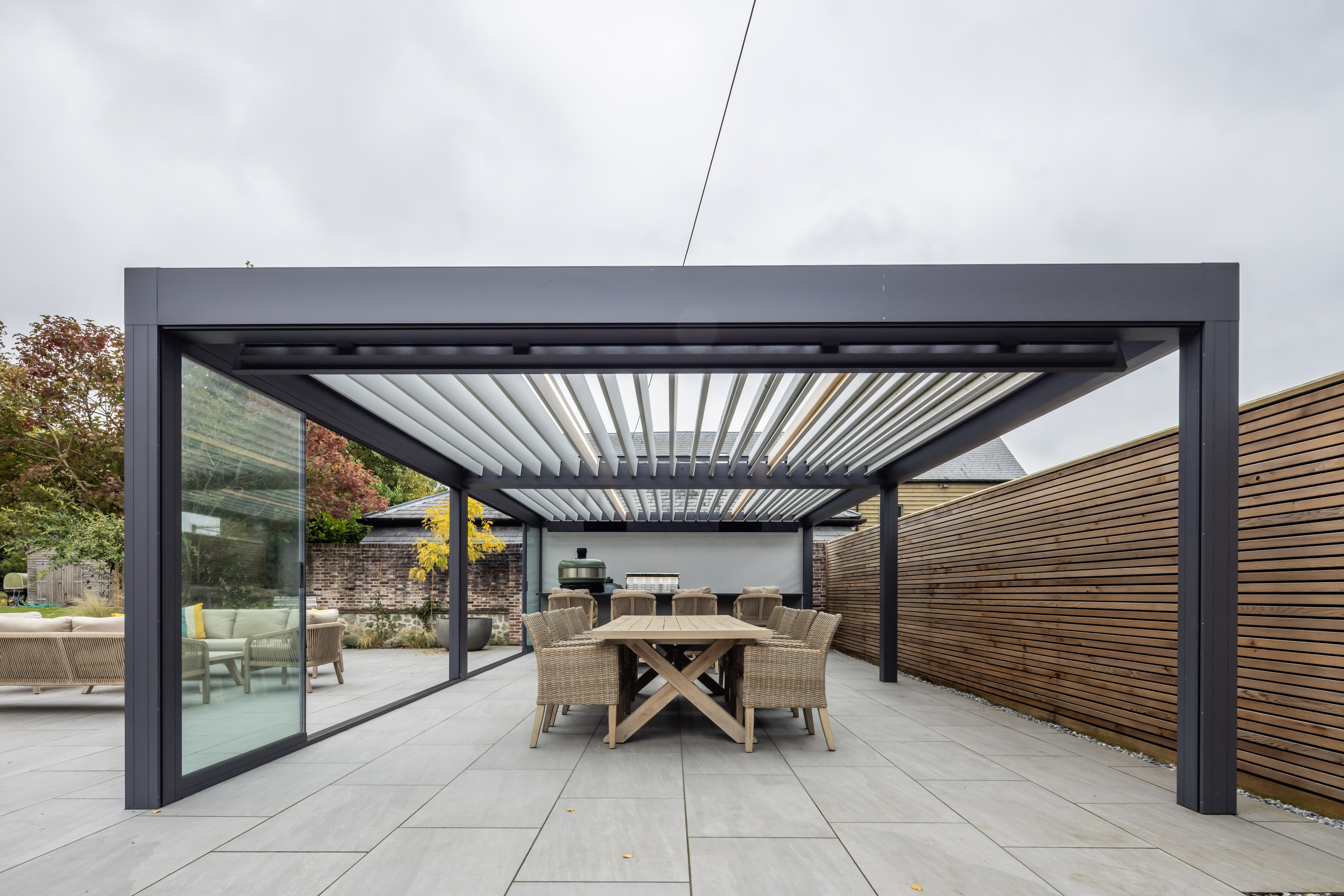 An aluminium pergola with a retractable roof for a genuine open-air experience.
